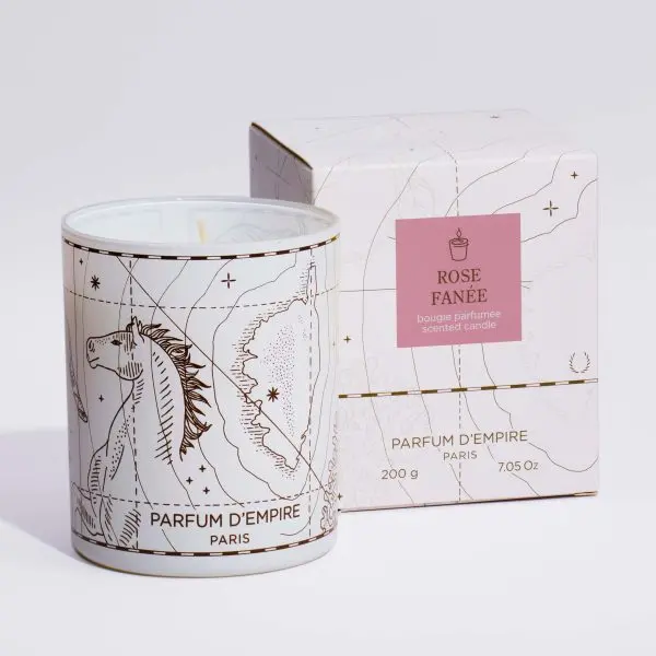 It is a diaphanous rose, its hue as pale and pink as the flesh of nymph. This morning, she was the queen of the garden. Now she is exhaling her soul from all her petals, saturated with the heat of the day. Exceptionally gorged with Turkish rose absolute, the perfume of this candle wafts its last, charming trail.